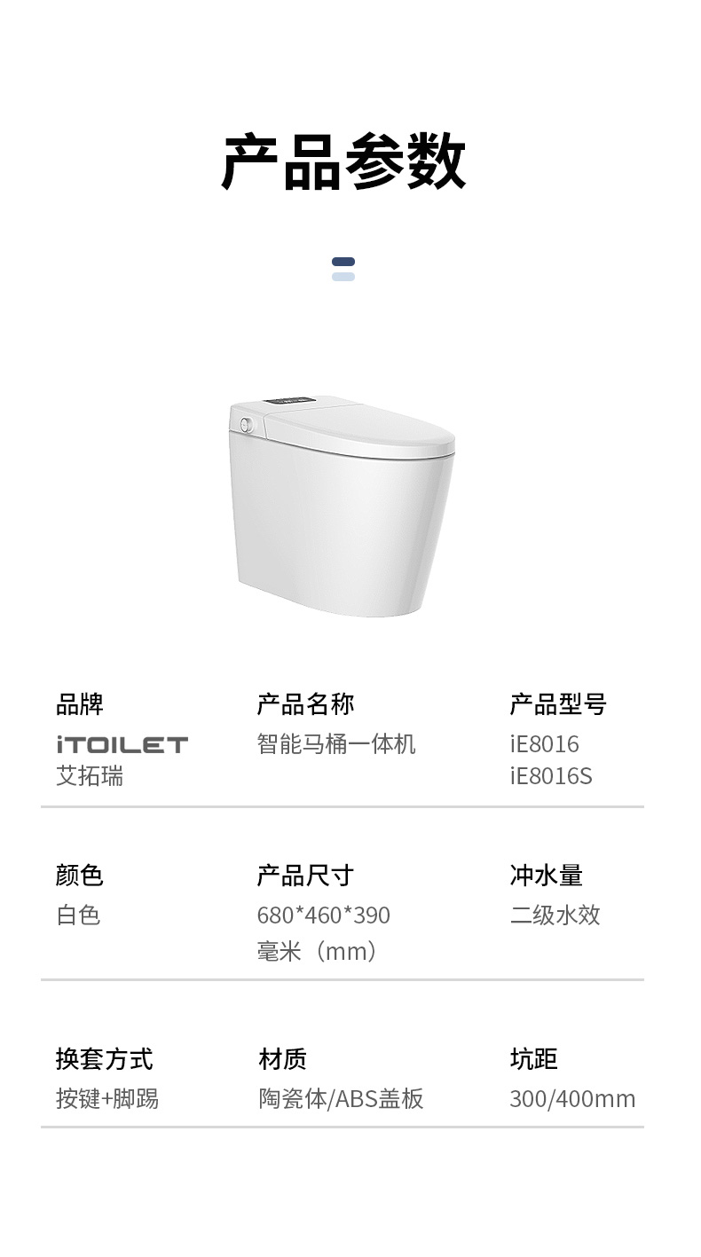 產(chǎn)品型號(hào):iE8016S 智能馬桶